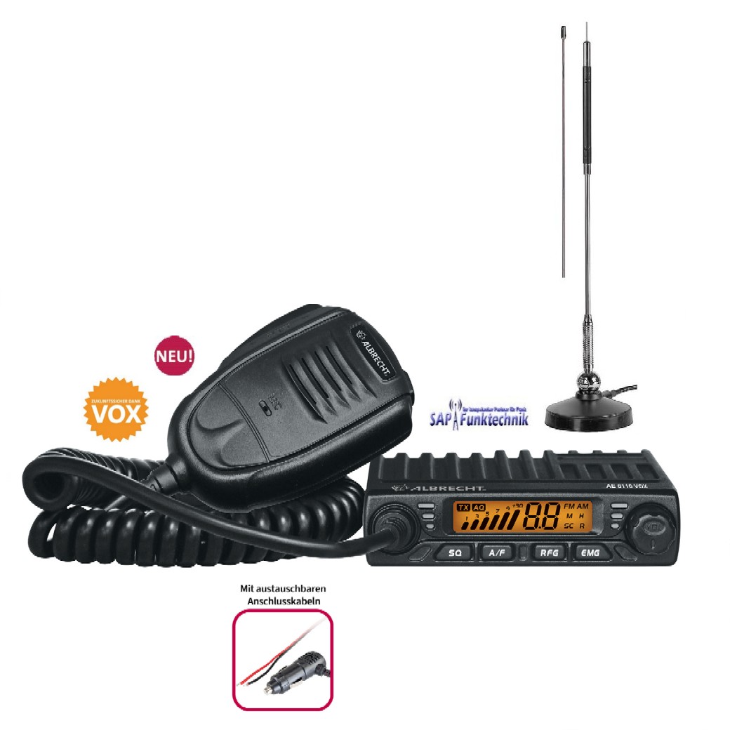 ALBRECHT AE 6110 VOX Set, inkl. Mag Star 27 CB-Magnetantenne 63 cm - Der Powerzwerg! Ein CB-Funkgerät im Slim-Line Format.