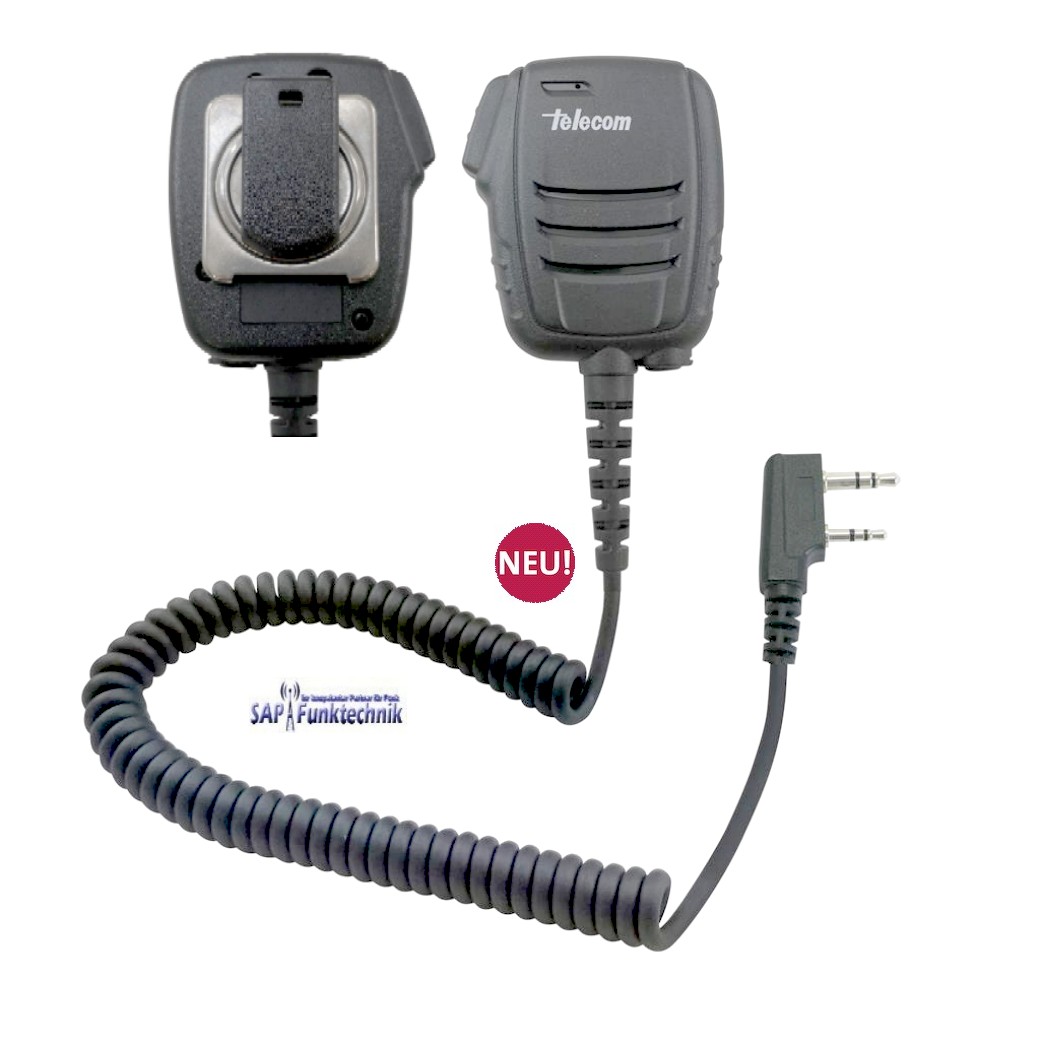 Team JD-7202, Lautsprechermikrofon - ist ein Lautsprechermikrofon mit Kenwood Winkelstecker 2,5/3,5 mm Stereo. Der Befestigungsclip an der Rückseite ist drehbar und kann so speziellen Trageanforderungen angepasst werden. Das Lautsprechermikrofon ist mit einer zusätzlichen 3,5-mm-Klinkenbuchse für Kopf- oder Ohrhörer ausgestattet, wird diese verwendet, so wird der interne Lautsprecher deaktiviert.