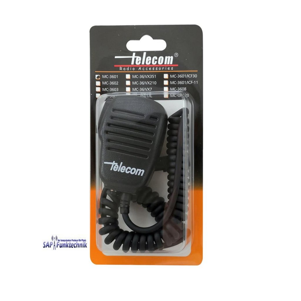 Telecom JD-3601 Lautsprechermikrofon - Telecom JD 3601 Robustes Lautsprechermikrofon mit hochflexiblem Spiralkabel, mit einem drehbaren Gürtelclip (Metallplatte), einer PTT-Taste mit deutlich fühlbarem Druckpunkt und einem 3,5mm-Mono-Ohrhöreranschluß ausgestattet.