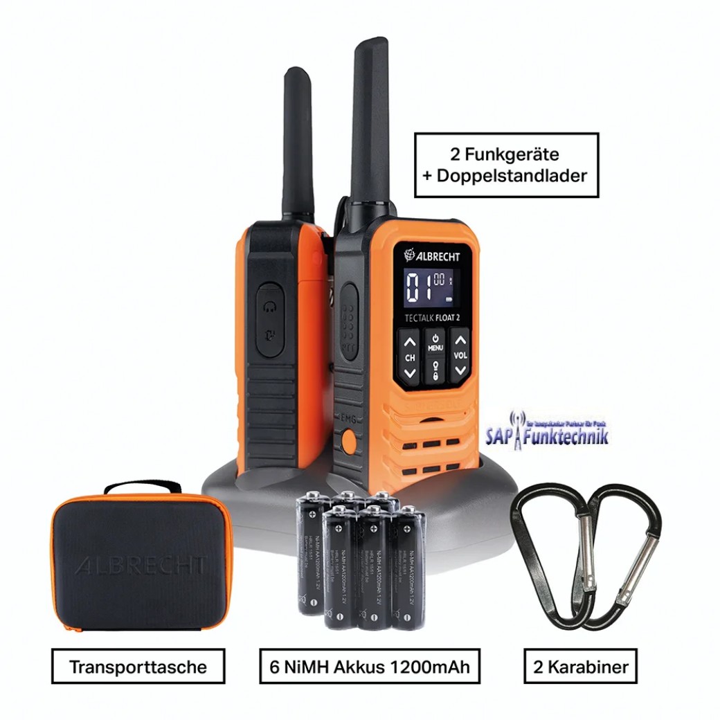 Albrecht Tectalk Float 2 Kofferset - wassergeschütztes PMR inkl. Doppelstandlader, Karabiner